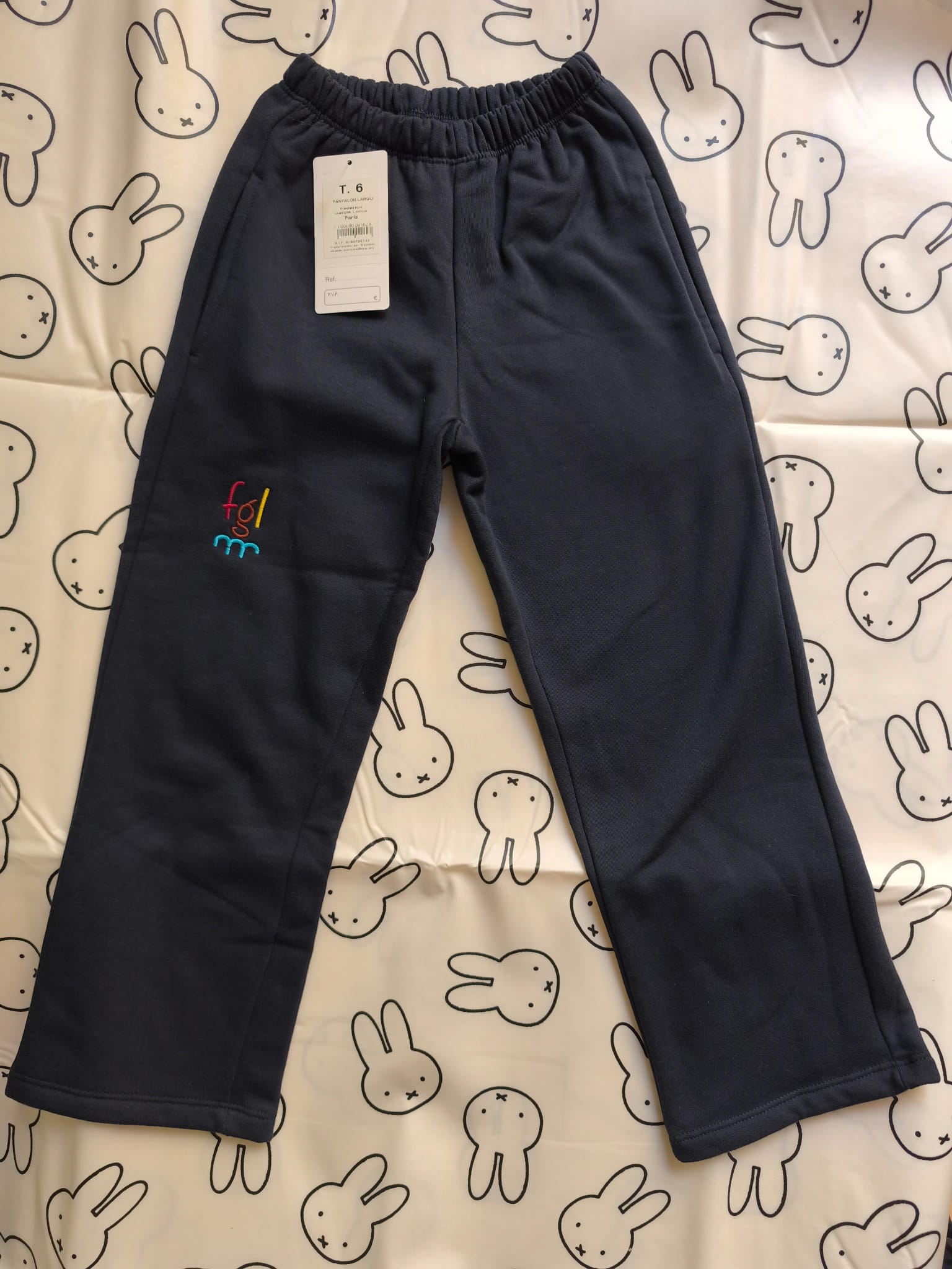 Pantalón largo azul marino con logo del colegio bordado.